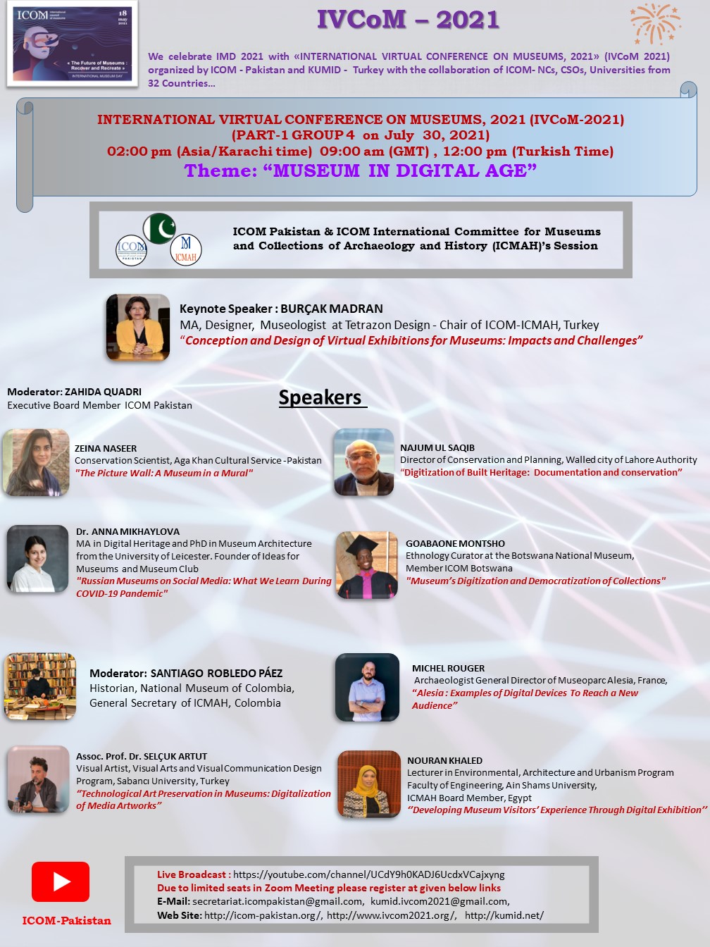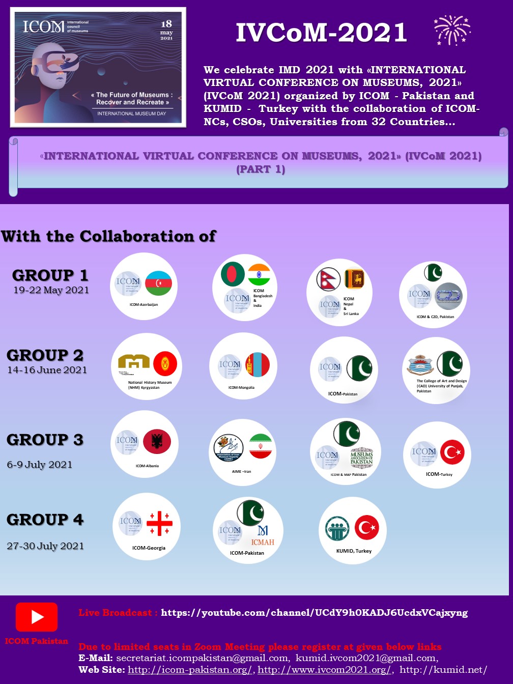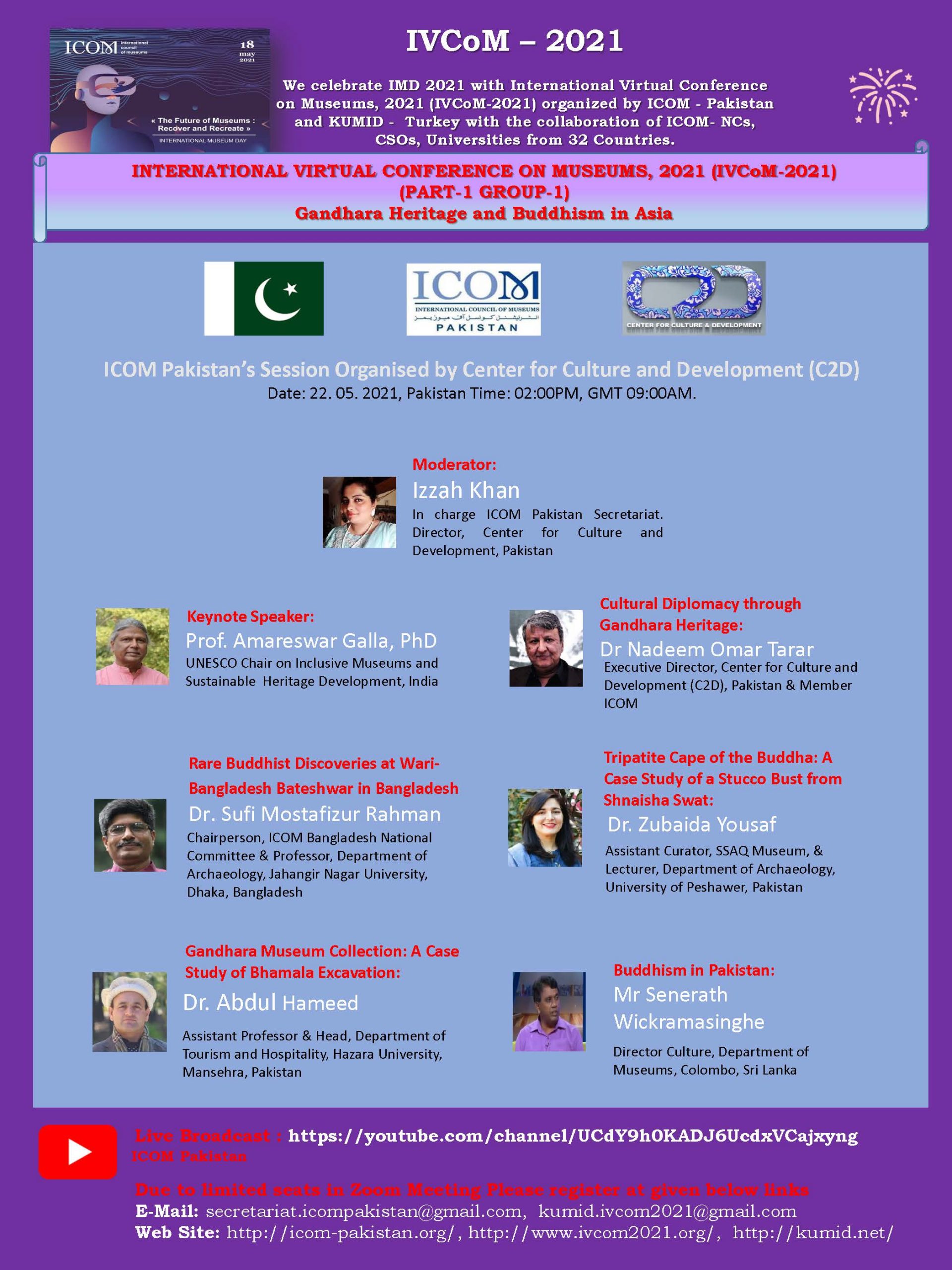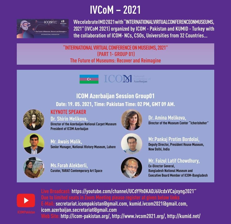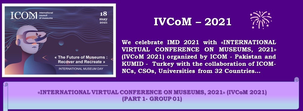 ICOM - Pakistan ve KUMID - Türkiye, 32 Ülkeden ICOM Ulusal Komiteler , (ICOM-NCs), STK'lar, üniversiteler işbirliği ile düzenlenen «ULUSLARARASI SANAL MÜZELER KONFERANSI 2021» (IVCoM 2021) ile Uluslararası Muzeler Günü 2021’I (IMD 2021) kutluyor…