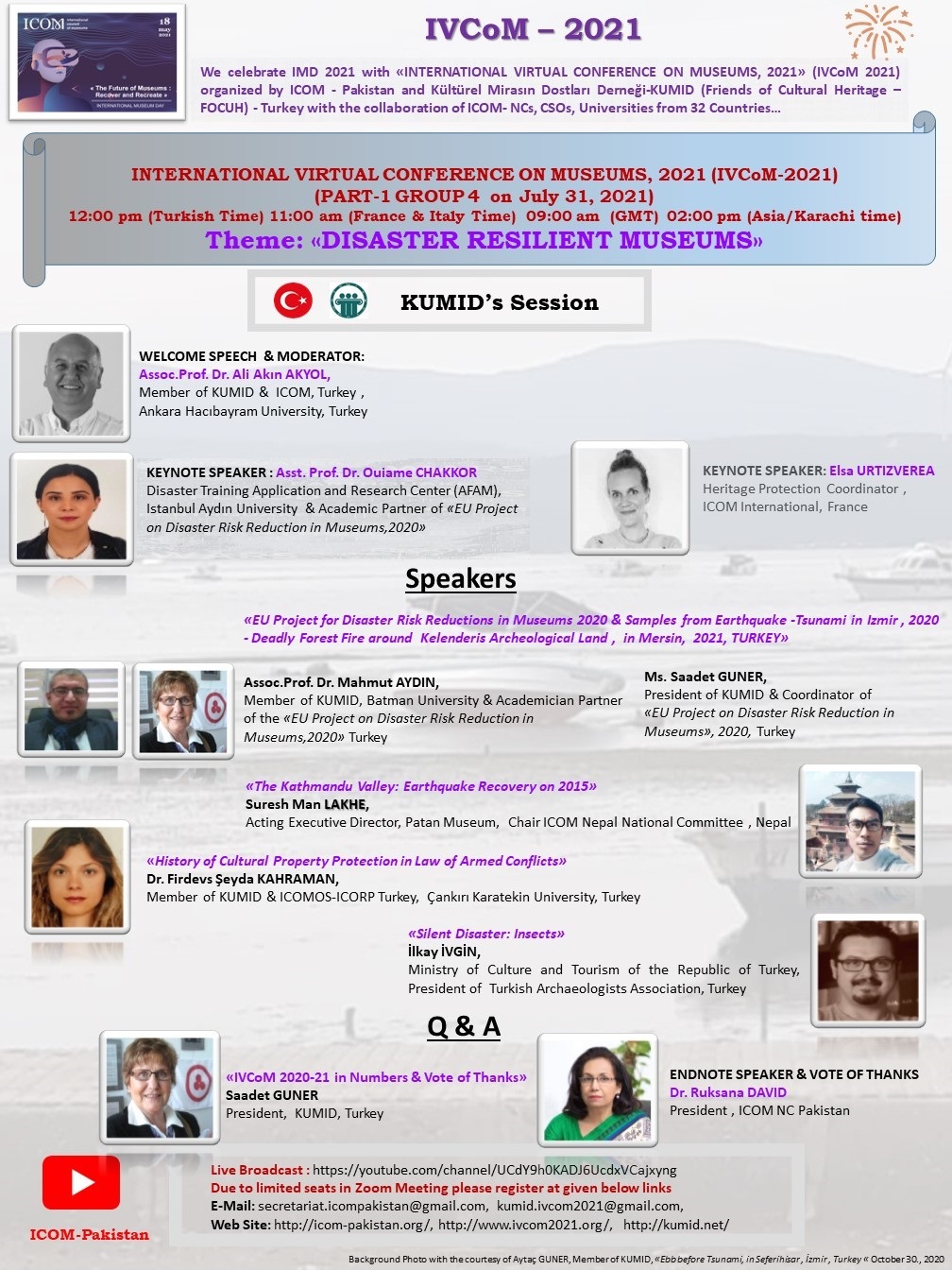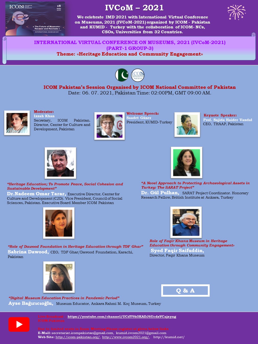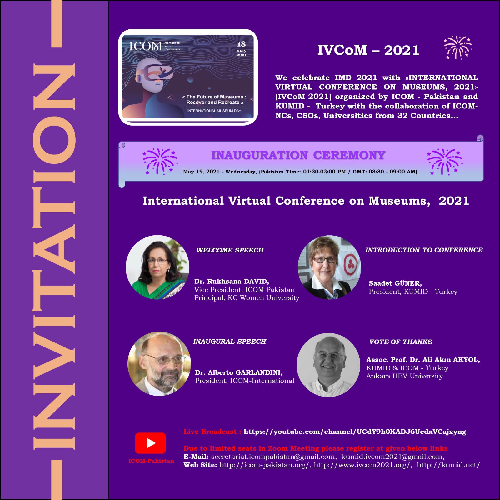 ICOM - Pakistan ve KUMID - Türkiye, 32 Ülkeden ICOM Ulusal Komiteler , (ICOM-NCs), STK'lar, üniversiteler işbirliği ile düzenlenen «ULUSLARARASI SANAL MÜZELER KONFERANSI 2021» (IVCoM 2021) ile Uluslararası Muzeler Günü 2021’I (IMD 2021) kutluyor…