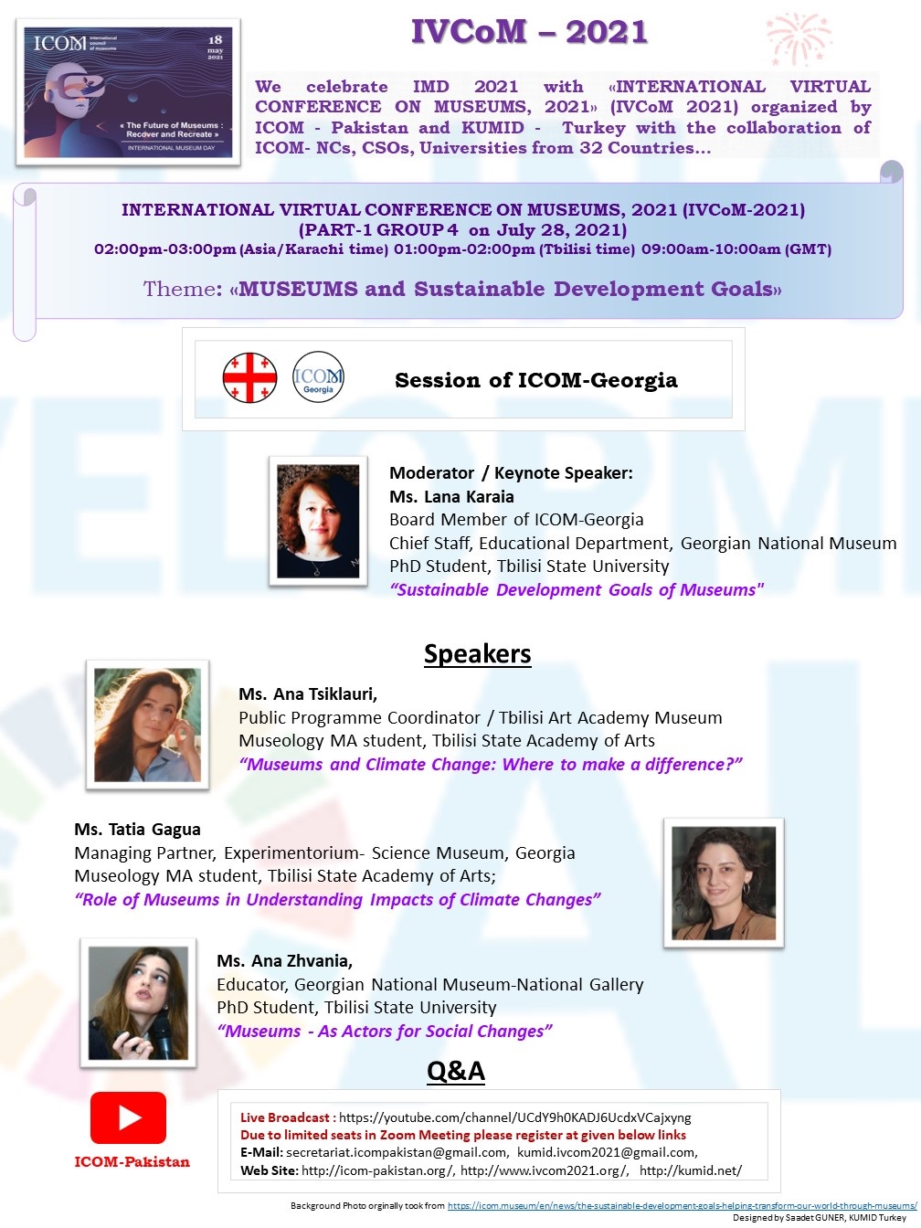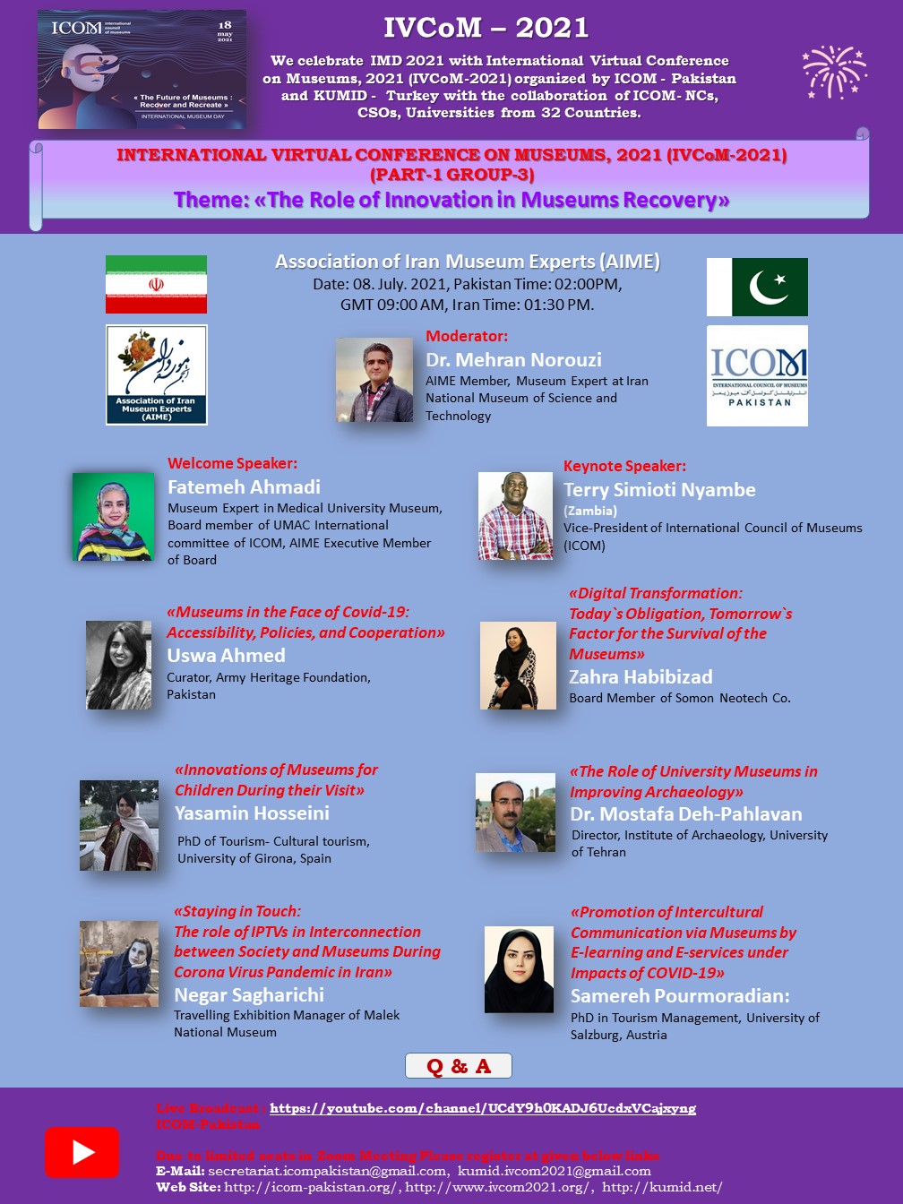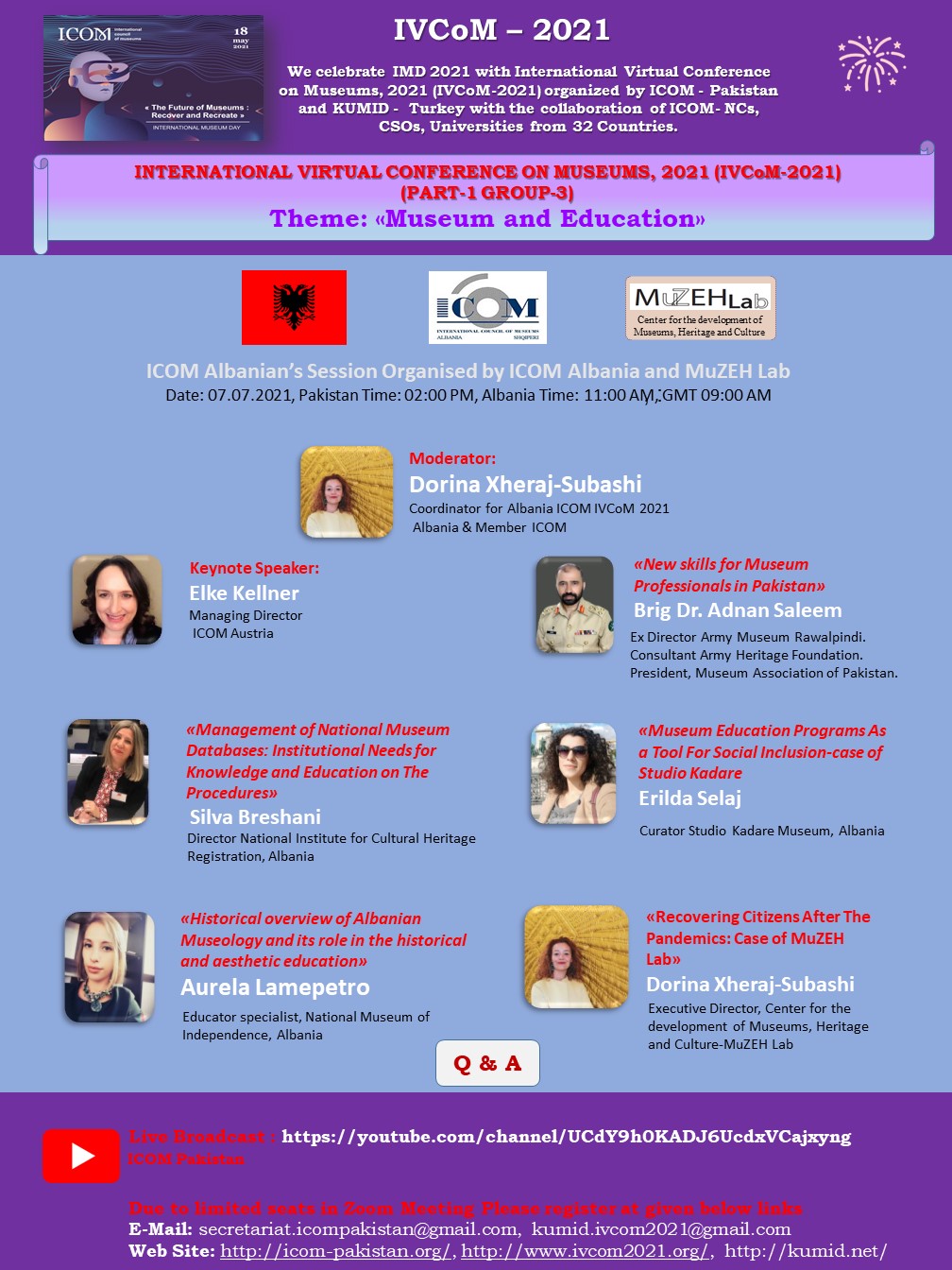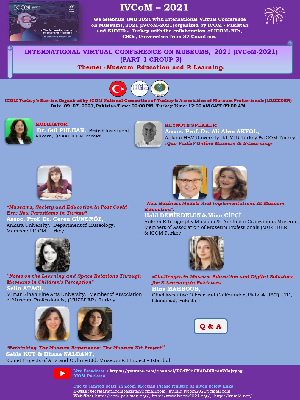 ICOM - Pakistan ve KUMID - Türkiye, 32 Ülkeden ICOM Ulusal Komiteler , (ICOM-NCs), STK'lar, üniversiteler işbirliği ile düzenlenen «ULUSLARARASI SANAL MÜZELER KONFERANSI 2021» (IVCoM 2021) ile Uluslararası Muzeler Günü 2021’I (IMD 2021) kutluyor…